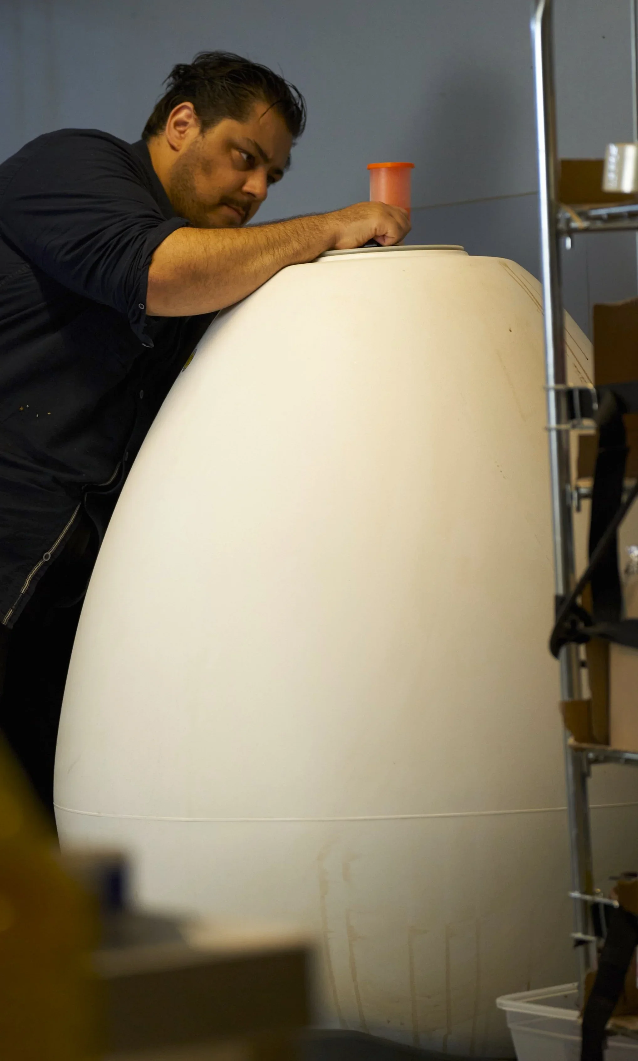 We use High-Density Polyethylene egg-shaped fermentation tanks. The material’s molecular composition, allows the ferment to breathe, hence oxygen can slowly pass through the tank and into the ferment. In addition, the material is an insulator of heat, while the egg-like shape facilitates a circular flow of convection that generates heat. Both allow us to save energy.